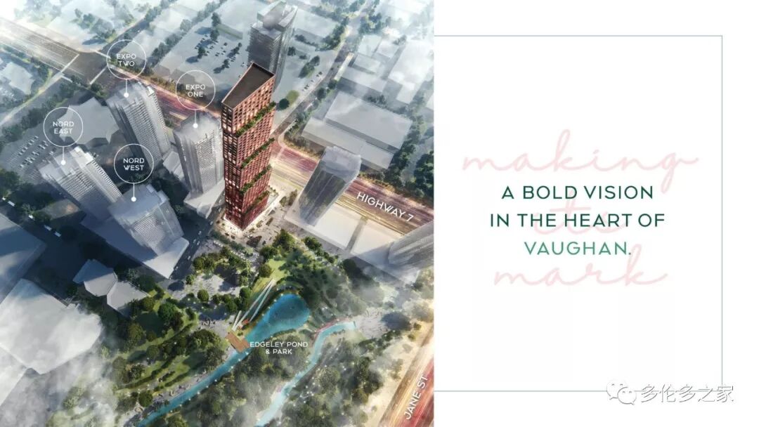 按照旺市市长Hon Maurizio的远景规划,VMC建成后将吸引众多多伦多企业,预计周边将提供至少2万个工作岗位。旺市是过去2年安省人口及就业机会发展最快速的城市之一,相对较低的土地价格吸引了大量的投资者及企业,创造了大量的新工作机会。CG Tower楼盘所在地Jane St. / Hwy 7的前身是低密度工业区,但是随着VMC的发展,这里未来将逐步成为高密度的住宅及商业中心,发展潜力不可限量。