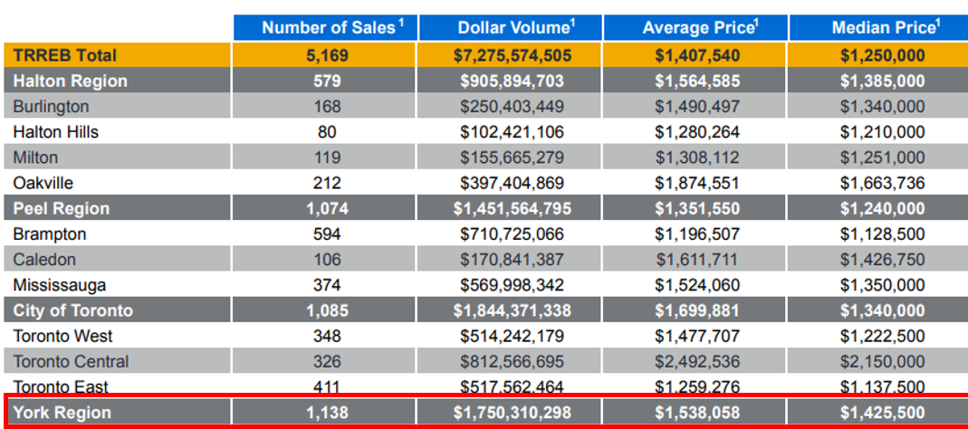 报告中还显示,华人比较关心的约克地区 (York Region) 独立屋 (Single family detached) 六月成交量为1,138笔,平均售价 $1,538,058,房屋价格指数综合基准同比增长了 23.68%;